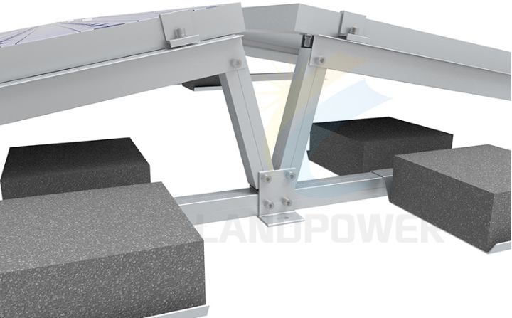 The ballasted design uses heavy concrete blocks to secure panels without drilling into the roof membrane. This protects the building’s waterproofing and preserves the original roof warranty.