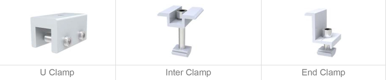Standing Seam Roof U Clamp Mounting is simple,easy and fast mounting solution for standing seam metal roof, no drill, no premature corrosion on roof.t is simple, just U Clamp roof attachment,end clamp and mid clamp with A2 (304) fasteners.The system can achieve stable and strong connection between the roof support structure and solar modules with modular Patented design.Pre-assembled kits save the installation time and cost on site. It just have U clamp roof attachment, mid clamp, end clamp.